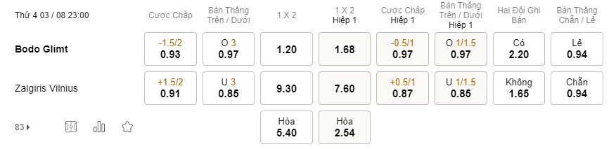 Soi kèo tài xỉu Bodo Glimt vs Zalgiris: 0.97*3*0.85